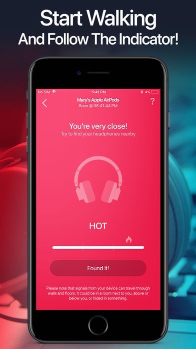 • When you are about 3-5 feet away from your headphones the indicator will display Hot. Hooray! You found your headphones!