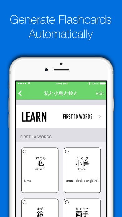 1度出会った単語を反復学習できる漢字暗記カード