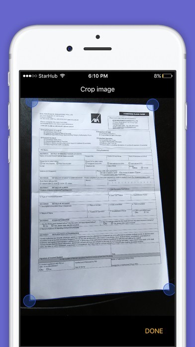 あなたの iPhone または計算されたカメラを使用して、文書、領収書、名刺またはグラフィカルな素材をスキャンします。