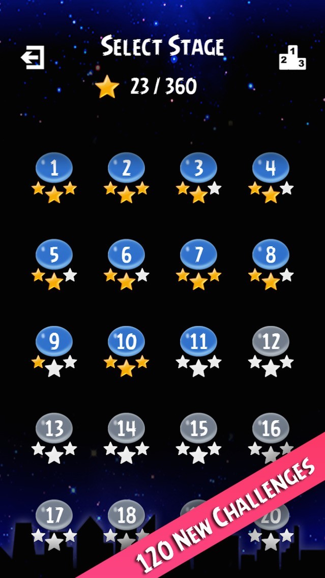 - Adventure mode: every stage has its own target, try your best to get 3 stars