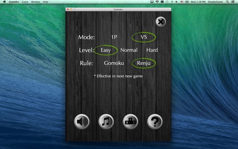 五目ならべでは、通常ルールのスタンダードモードと、ルールを付け加えた連珠モードの2種類から選択することができます。レベルアップしてきたら、連珠モードに挑戦してみましょう。
