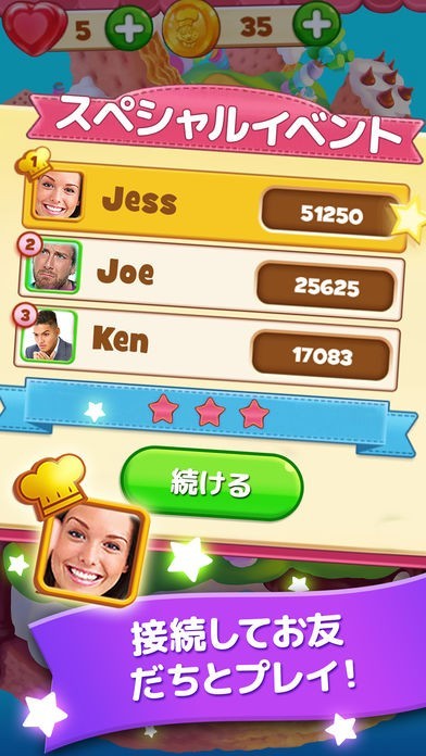 『クッキージャム』は、可愛くて美味しそうなクッキーやチョコを3つ繋げて消す3マッチパズルゲームです。 3000以上のステージが用意されており、どのステージも手応え抜群! 砂糖や小麦粉をレシピ通りに組み合わせながらブロックを消し、クッキーパズルを勝利していきましょう! Facebookとの連携機能も用意されており、友達とスコアを競い合えるのも楽しいポイントとなっています。 随時開催されているスペシャルイベントでは、友達よりも高いスコアを目指してみてはいかがでしょうか。