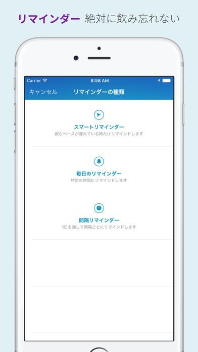 美容と健康に!熱中症対策もできる!毎日の水の摂取量を素早く簡単に記録!リマインダーで飲み忘れも防止