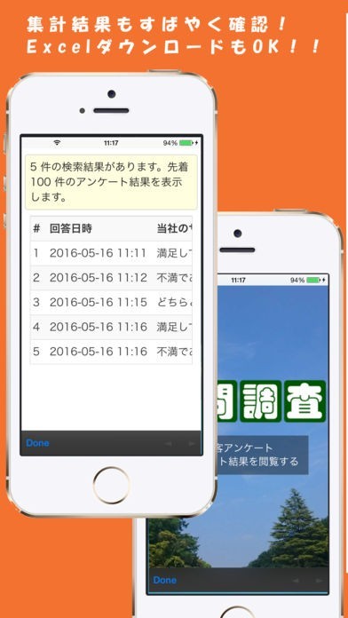 アンケート結果はExcel形式ファイルでダウンロードできるので、調査後の作業も安心です。