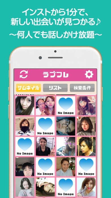 写真やエリア等の条件から好みの異性を検索していける