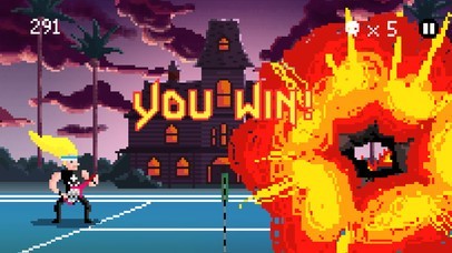 Take down evil tennis machines while jamming to 8-Bit heavy metal music.