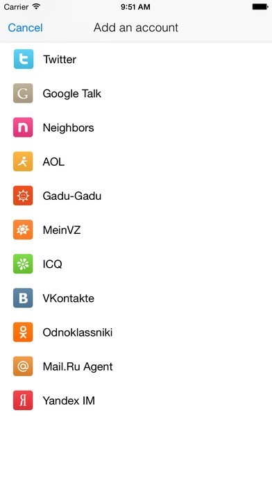 App Storeより引用Chat on Google Talk, Twitter DMs, ICQ, Jabber (and Slack chat through Jabber) and more. IM+ features free texting, group chats, message history, supports multiple accounts per service. IM+ is the most secure chat app - its off-the-record feature together with Beep (WhatsApp-like messenger) is a complete security for your encrypted p2p messages.
