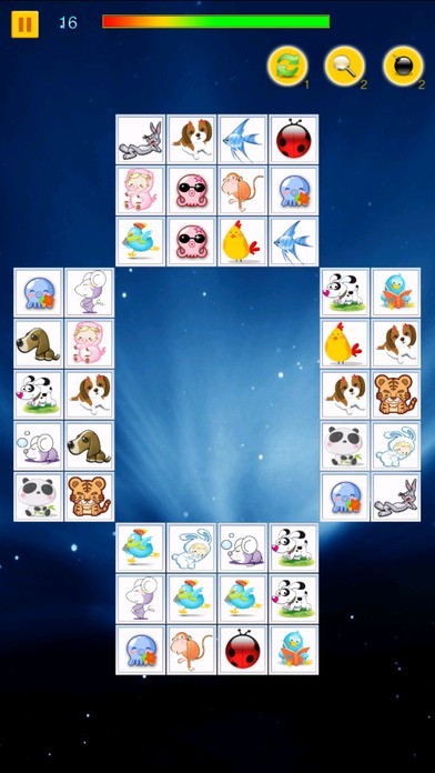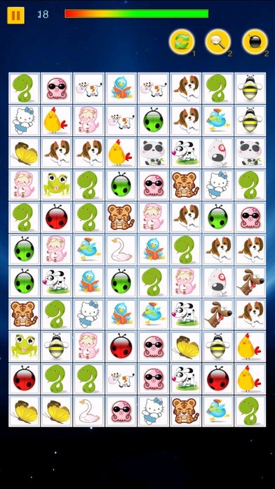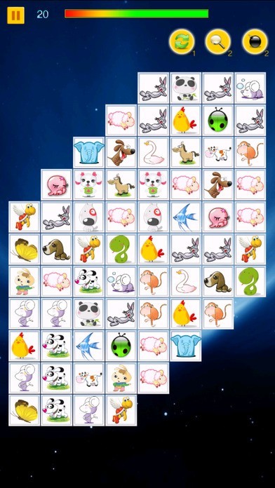 App Storeより引用连连看是一款操作非常简单的小游戏,它的玩法就是用直线将两个相同的卡通图标消掉,分为十二关,难度递进。这款游戏目前是风靡大江南北,出 现了各种各样的版本。最主要是训练眼明手快及增强逻辑判断能力。
