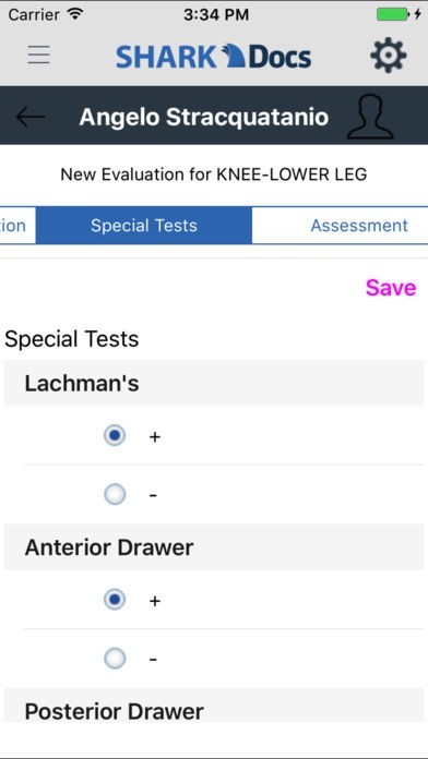 SHARK Docs offers the user SOAP Note templates that are specific to each part of the body. The friendliness of check-boxes and yes/no options limit the amount of narrative text and overall time needed to thoroughly document injuries and illnesses. Users can also use the “configure assessment” option to customize their SOAP Note templates.