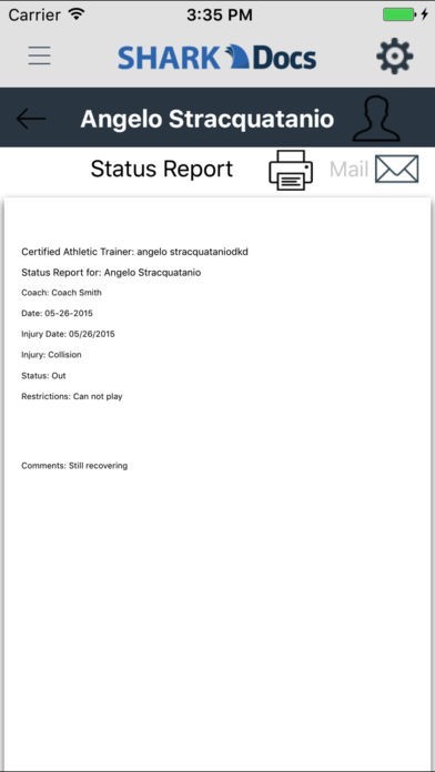 - Send customized and printable reports in real-time to coaches, physicians, administrators, parents, or other