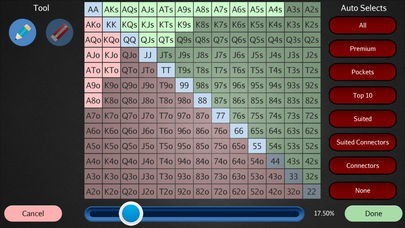 - Hand Strength tool which gives you the ability to understand how strong your starting hand is against all other hands and any random number of opponents.