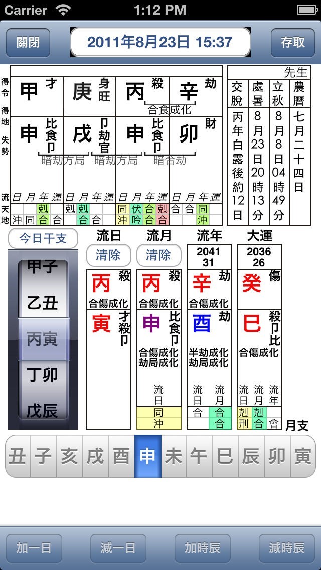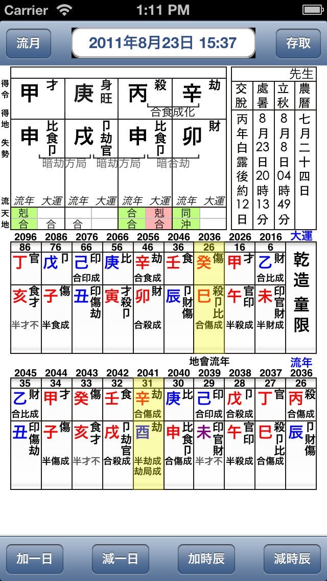 - 清楚表示大運、流年、流月及流日與原局四柱的關係 (剋、合、沖、刑)。