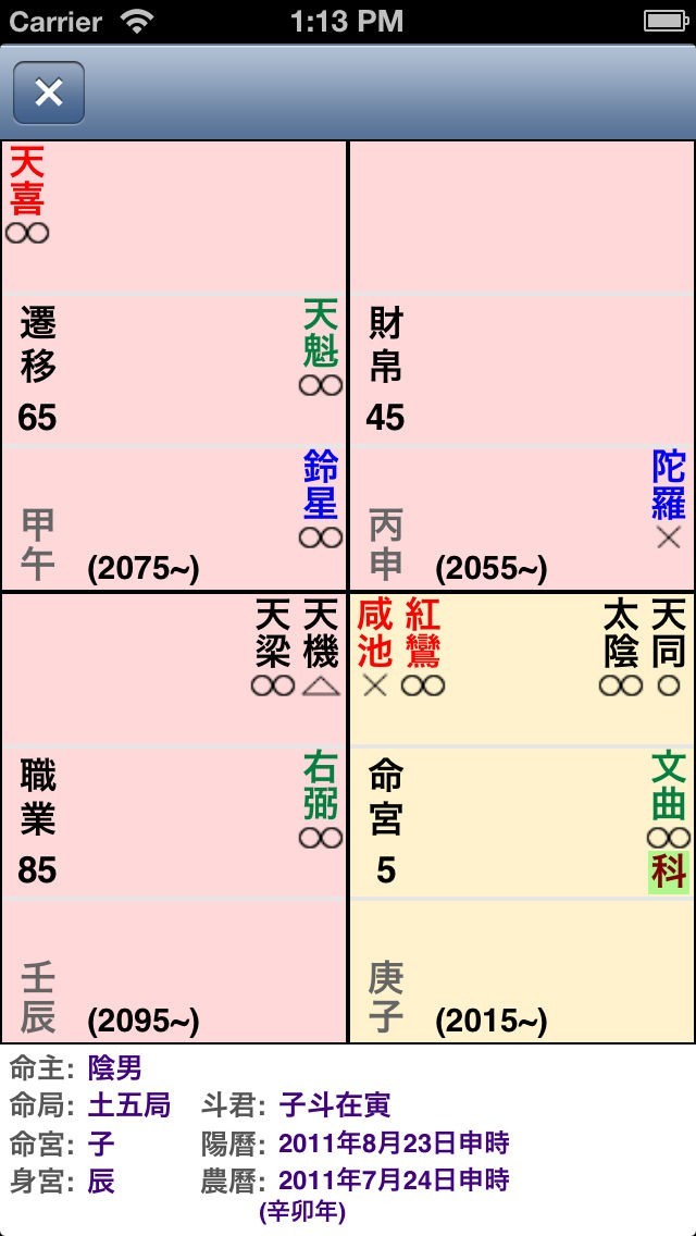 App Storeより引用八字紫微斗是一個以八字為主, 紫微為副的純起盤程式。