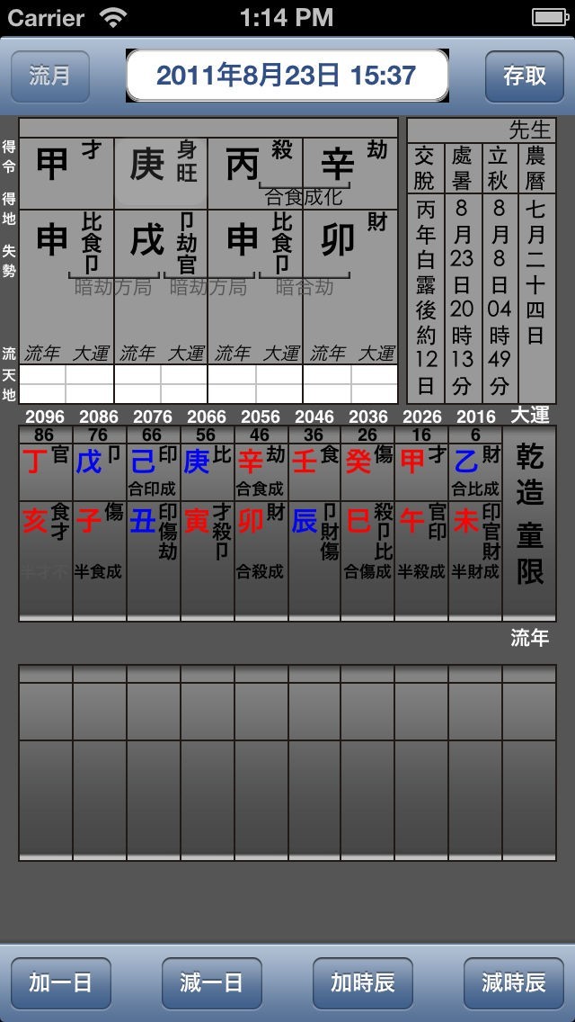 - 附有大運、流年、流月及流日資料。