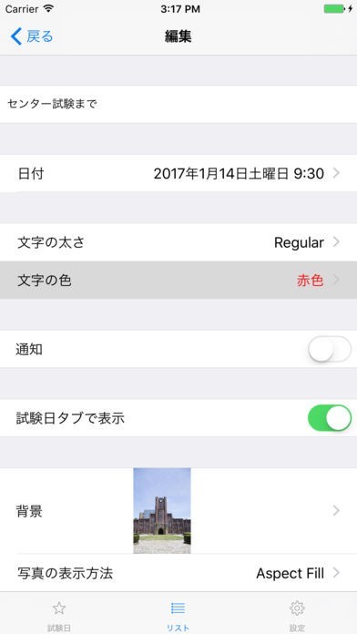 カウントダウン画面に画像表示ができ大学受験などに向けてやる気を高められる