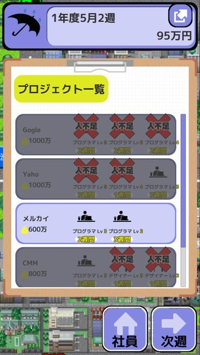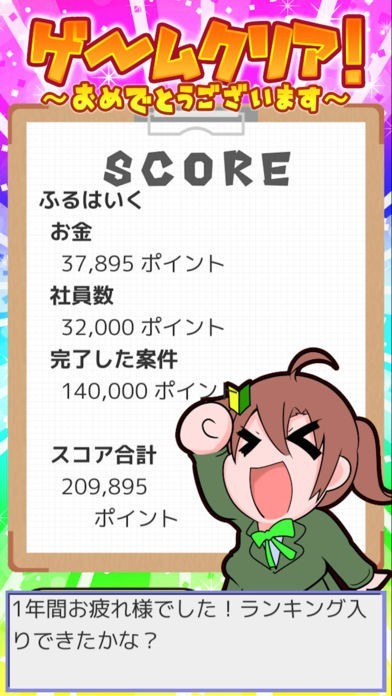 途中で様々なイベントが起きますが、頑張って1年間倒産しないようにしましょう。
