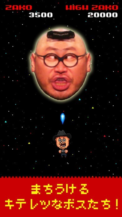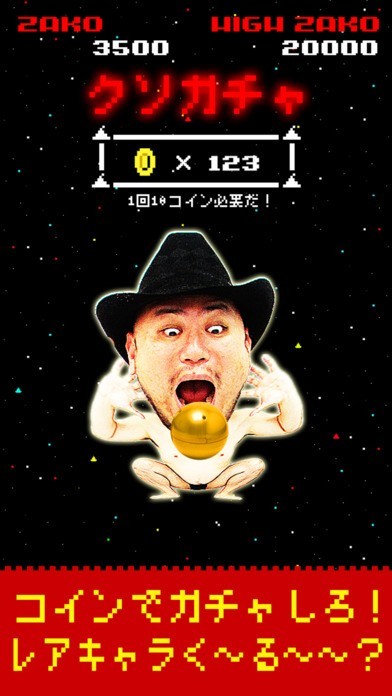 R-1ぐらんぷりで優勝したことでも知られる芸人ハリウッドザコシショウが登場するシューティングゲームです。弾は自動で発射されるので、ザコシショウのキャラクターをスワイプで上下左右に操ることでうまく敵を撃っていきます。ボイス付なのでネタも楽しみながらプレイすることができます。ボスキャラとして有名芸人が出現するので、次は誰が出てくるかが気になって先に進みたくなります。敵を倒してハイスコアを目指すだけでなく、途中で出てくるコインを集めるとクソガチャを回すことができ、新たなキャラやボイスが手に入るコレクション性も熱いです。ステージ制でキリの良い所までプレイできるので、空き時間に合わせてプレイできます。