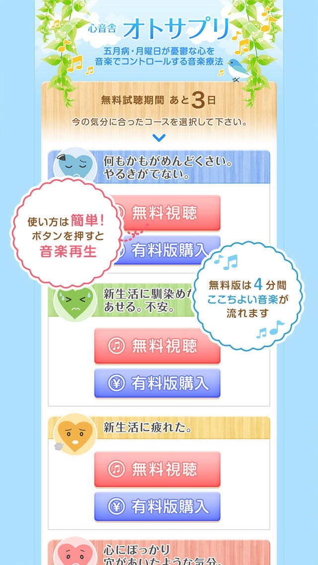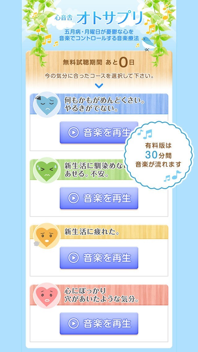 無料・五月病、月曜日が憂鬱な人の為の音楽のサプリメント 〜オトサプリ〜 5月病 ブルーマンデーのスクリーンショット