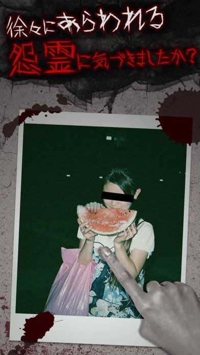 アプリを見ているとき、普段の写真から徐々に幽霊が浮き上がってきます。よ~く集中して、心霊写真となる要因を見つけましょう。日常の脳トレーニングとして使うことができます。