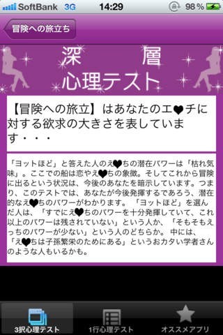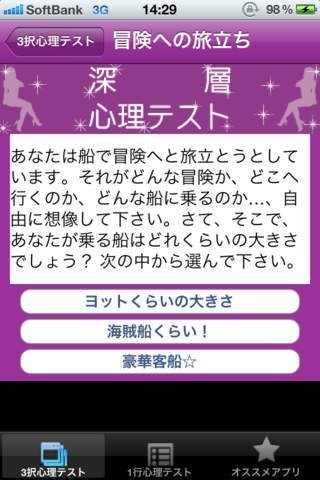 時と場所を選ばずに簡単操作で深層心理テストをすることができる