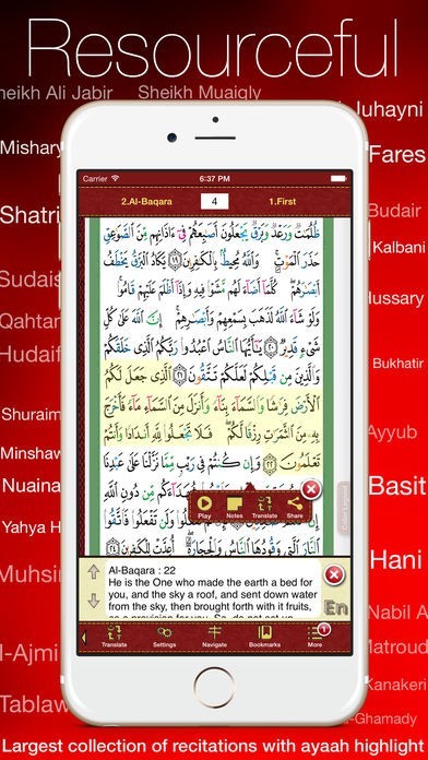 A special highlight of this app is the authentic translation in English by renowned Muslim scholar Hz. Mufti Taqi Muhammed Usmani db.