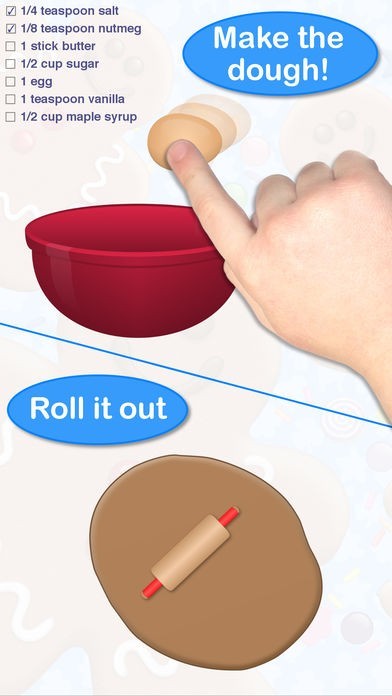 If you enjoy making cookies but hate the mess, this is the app for you. We provide the dough, a rolling pin, cookie cutters, your choice of frostings, sprinkles, and candies all in one easy to use package.
