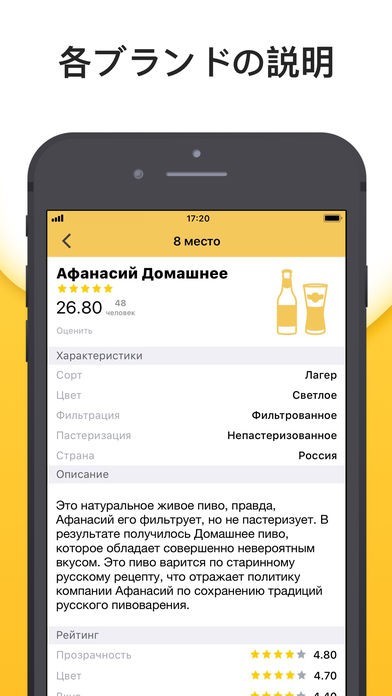 まだ飲んだことがないスタイルを探したり、飲んだビールを評価したり、自分のカタログを作成したりすることができます。「パイント: ビール・一覧」アプリはビール好きな方にとってかけがえのないガイドブックとなります。
