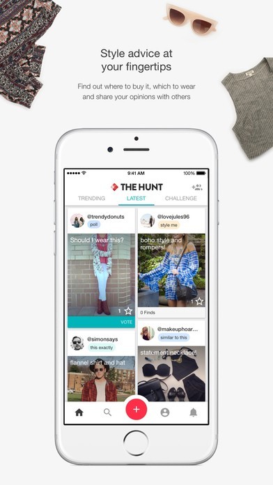 世界各国からお洒落に敏感なユーザーが集うSNSツール「The Hunt」では、ファッションのヒントを得るための機能が充実しています。デートの服装に迷ったら、写真投稿機能から着ていく予定の服の写真を投稿してみましょう。興味を持ったユーザーから服装のアドバイスや、購入ショップの提案を受けることができます。投票機能を利用して意見を募ったり、他ユーザーが設置した投票への参加も可能。海外ブランドの新作レビューなども掲載しており、美麗な写真付きでお洒落の話題をたっぷりと楽しむことができます。流行中の服やセレブが使っているアイテムについてなど、海外の最先端に触れられるのも嬉しいポイントとなっています。