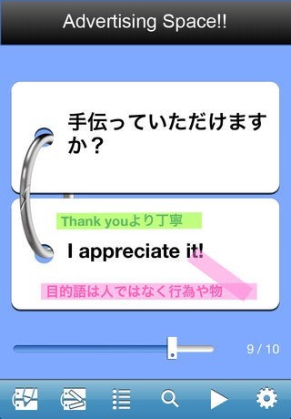 学校のテストの前などに単語帳を使う人は多いでしょう。そんな時に使えるのがこのアプリで、表面に英単語・裏面に日本語といった形で使うことができます。5.10.30.60秒と自動めくり機能も設定することができ単語をしっかり覚えたい時にはぴったりです。単語帳に記載すると単語のフォントの大きさや、テーマ色は自由に変更できるので、自分の見やすい仕様にできます。カード一枚につき、6個まで単語が記入できるので使い勝手がよく重宝するでしょう。