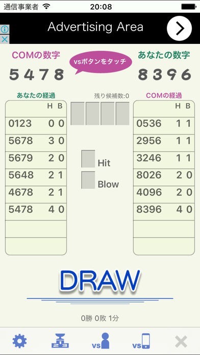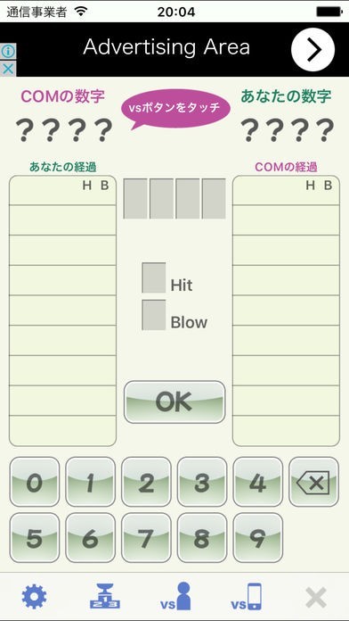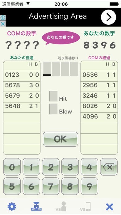 App Storeより引用COMとの対戦形式による4桁の数字当てゲームです。