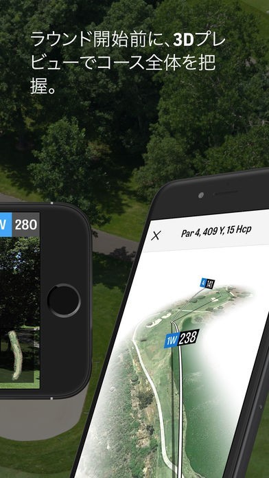 ARを使って、実際にコースを拡張現実で確認することができます。3Dになっているので分かりやすく、コースのイメージが事前につきやすいのでゴルフのラウンドを回る時には重宝します。