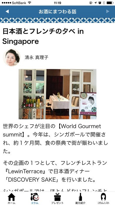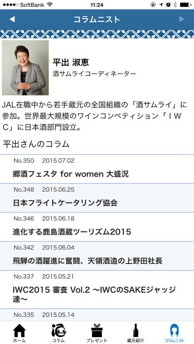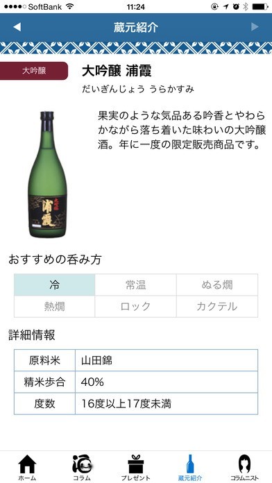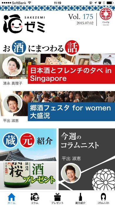 週替わりで女性視点のお酒にまつわるコラムから蔵元提供の日本酒データベースまでコンテンツが満載です。