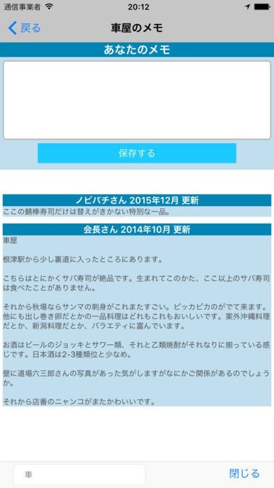 酒場について自分でメモを残せる