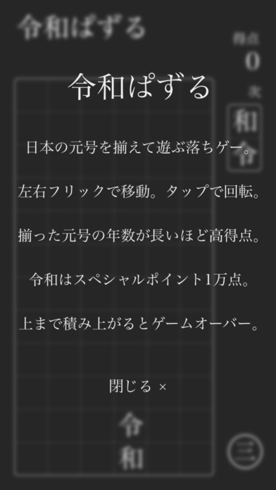 App Storeより引用日本の元号を揃えて遊ぶ落ちゲー。