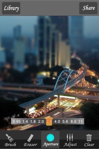 Adjust the aperture in FocusMe with a single gesture to instantly change the blur level of the out-of-focus area. This great tool turns simple-looking backgrounds into atmospheric backdrops.