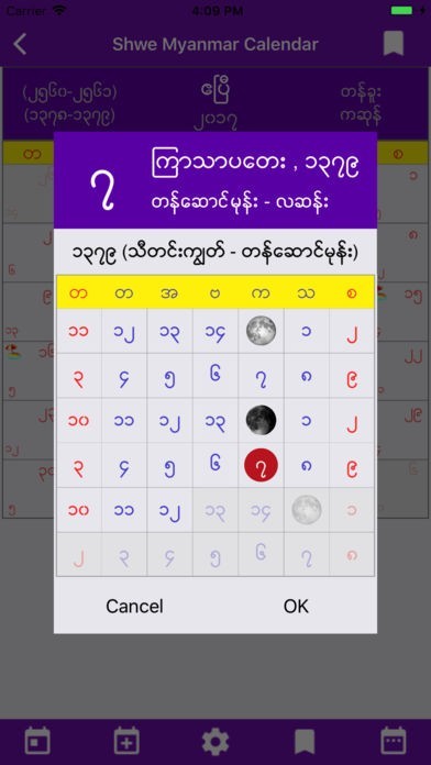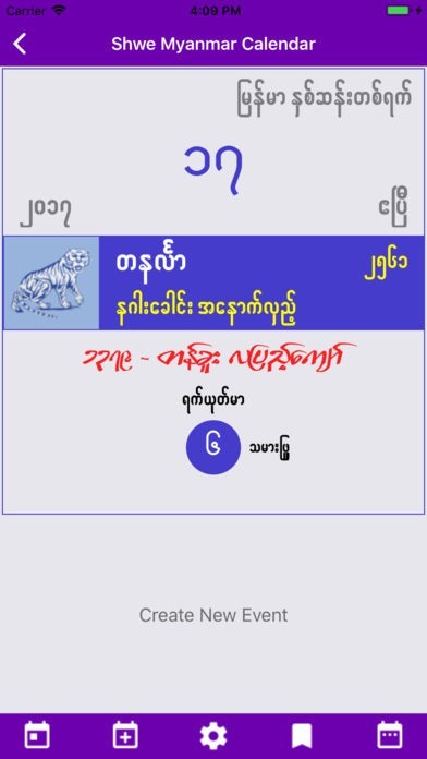 App Storeより引用If you want to keep your next years meno with notification, Shwe Myanmar Calendar is suitable for your requirement. Then this application support English to Myanmar and Myanmar to English Laungage and other feactures are following.