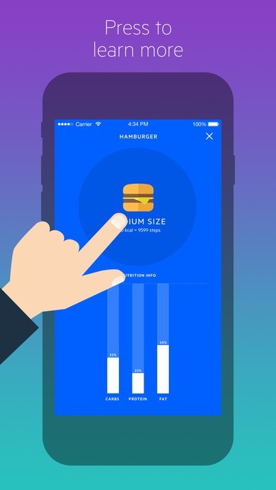 食事のカロリーを消費するために必要な歩数を表示!