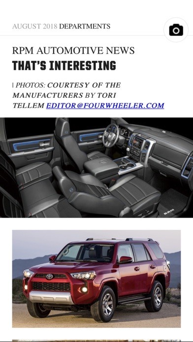 App Storeより引用Each issue of Four Wheeler presents a wide range of informative articles including adventure travel in the US and abroad, domestic trail rides and event coverage, comprehensive new-vehicle testing and evaluation, technical articles designed for four-wheelers of all abilities, as well as how-to installation articles, equipment guides and comprehensive product testing.