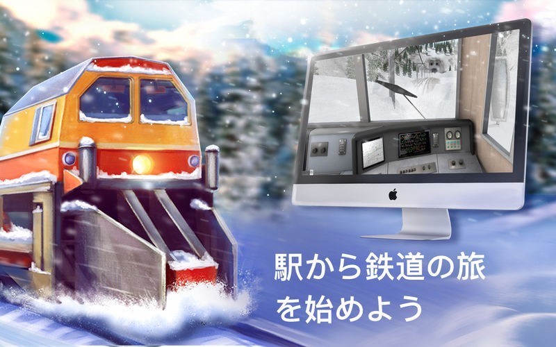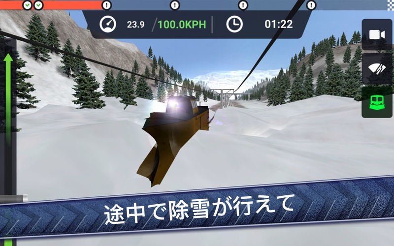App Storeより引用「除雪車・電車・シミュレーター・3D ー ロシア」で強力なロシアの列車を制御して下さい。本当の電車の運転手のように感じて、ロシアのタイガに旅をしましょう。ロシアの冬はかなり厳しいです。そしてシベリアのすべての鉄道は雪で覆われています。