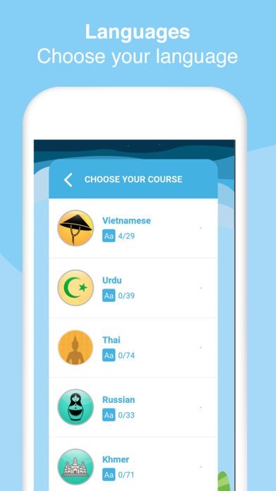 言語文字を教える数多くのミニゲーム、チャレンジ、クイズによって、新しい言語を長く楽しく学習できるでしょう。勉強している気分にはならないでしょう!