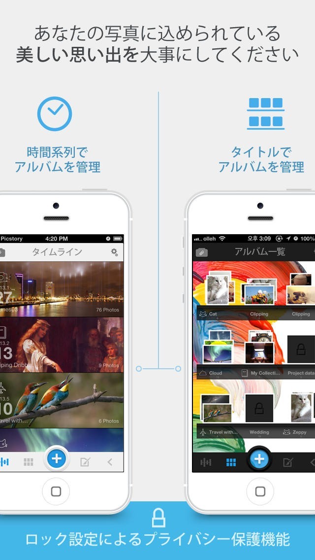 PicStoryは感覚的かつ便利なUIでアルバムを作り、管理する楽しさがあります。