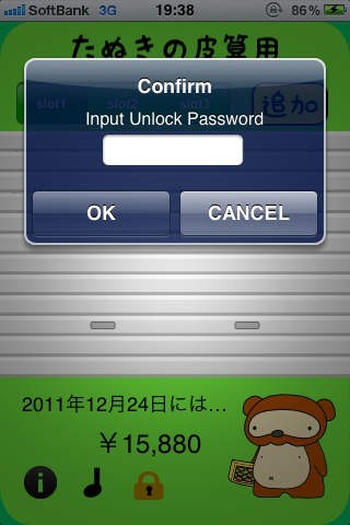 のぞき見禁止パスワード機能で安全家計簿