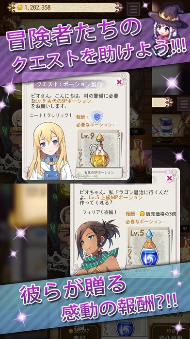 美少女キャラクターが多数登場する「ポーションメーカー」は、お店の経営が楽しめるやり込み系カジュアルゲームです。商品として作成できるポーションの種類も75種類と充実。販売価格をアップさせるためには、新たな素材の獲得や新規ポーションの作成が必須となります。人気商品を開発するために、失敗を恐れずに新たな合成にどんどん挑戦してみましょう。個性豊かな冒険者達が客として登場する他、美少女キャラクターの衣装も20種類以上が用意されているなど、やり込み要素がたっぷり揃っています。毎日の通勤通学の隙間時間にこつこつプレイを続けても、商品や衣装のコンプリートを目指して飽きずに遊ぶことができます。