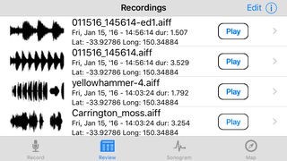 Tracks can be played from both sonogram and track review screens.
