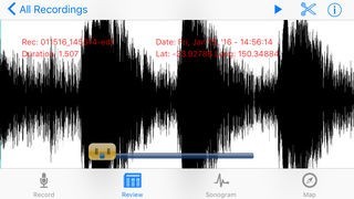 Recordings of up to 10 seconds can be made, edited, played and sonogram displayed.