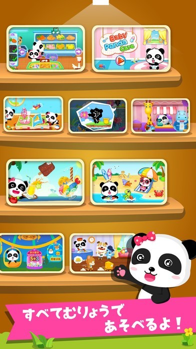 ・ごっこ遊び:「赤ちゃんの世話をする」「かいものだいすき」「パンダのキャンディーショップ」「中華レストラン」「ベビークッキング」「パンダの消防士」「ベビー幼稚 園」「楽しい商店街」「ベビーの病院」など