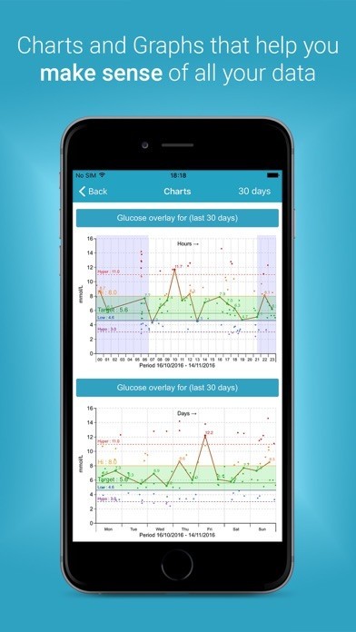 The application tracks almost all aspects of the diabetes treatment and provides you and with detailed reports, charts and statistics. You can send the reports to your supervising physician via email. Diabetes:M also gives you various tools, so you can find the trends in blood glucose levels and allows you to calculate normal and prolonged insulin boluses using its highly effective, top-notch bolus calculator.