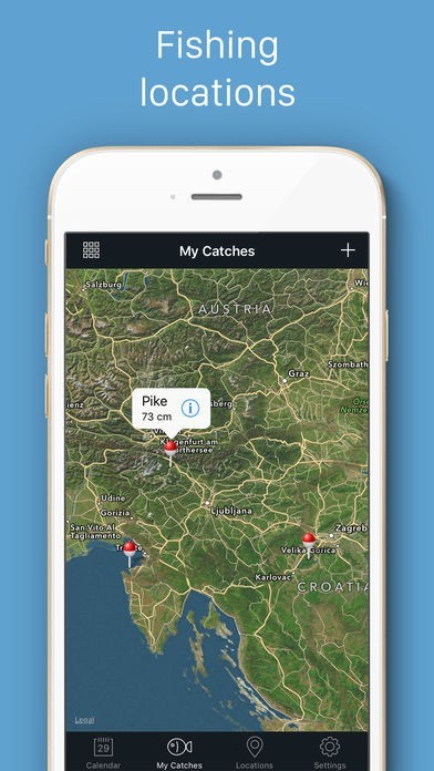 各地の釣りスポットが表示出来ると同時に、釣った魚を写真に撮る事が可能なので、成果を記録していきたい時に便利