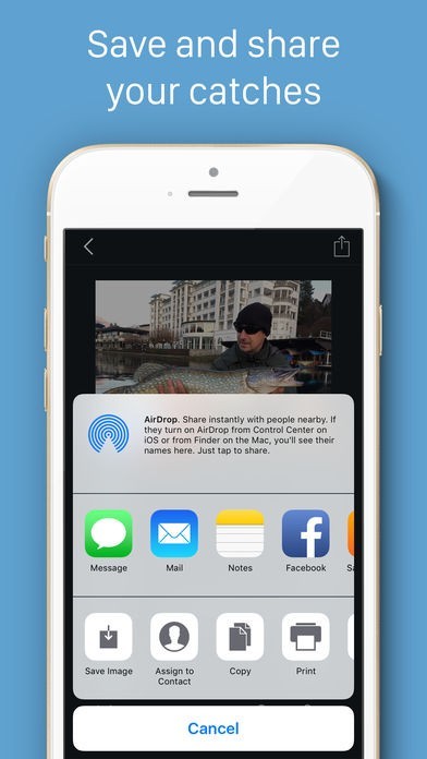 保存しておいた釣果記録は釣り仲間にシェアすることができます。電子メールで送信したり、Facebookで共有したり、アプリから直接印刷して紙面として残しておくことも可能です。