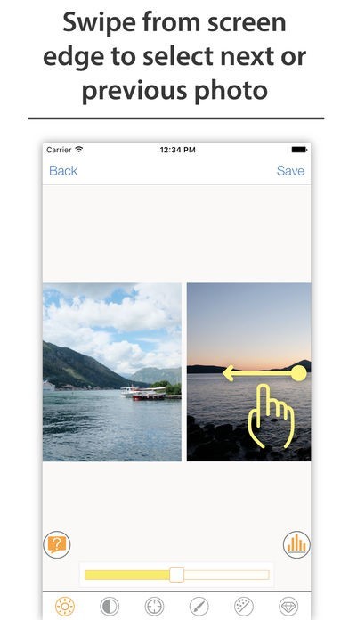 * Easy to compare photo with its original - just tap on the photo or near it to see the original.